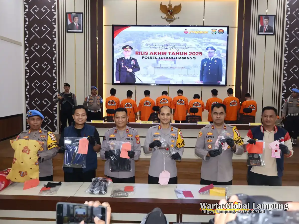 Tulang Bawang – Akhir tahun ditutup dengan gebrakan besar. Polres Tulang Bawang menggelar Konferensi Pers Akhir Tahun 2025 yang mengungkap fakta mengejutkan: 153 kasus tindak pidana berhasil dibongkar sepanjang tahun oleh Sat Reskrim Polres Tulang Bawang bersama seluruh Polsek jajaran.
