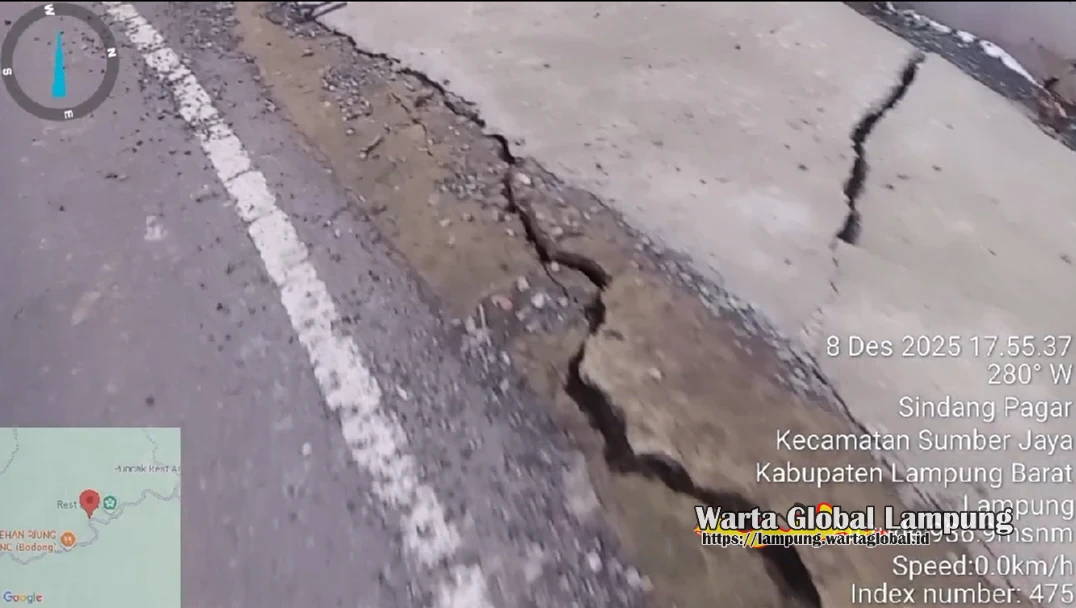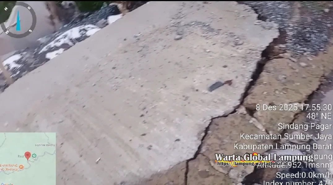 Lampung Barat — Kondisi jalan provinsi di ruas jalan lintas Liwa tepat nya di Pekon Sindang Pagar Kecamatan Sumber Jaya,kembali menjadi sorotan publik. LSM Prabhu Indonesia Jaya bersama Forum Rakyat Lambar (Forsal) menilai bahwa proyek pembangunan jalan tersebut diduga tidak dikerjakan sesuai standar, lantaran baru kurang dari satu tahun selesai namun kini sudah terlihat hancur, retak, bahkan beberapa titik mengalami patahan,Senen 08 Desember 2025.