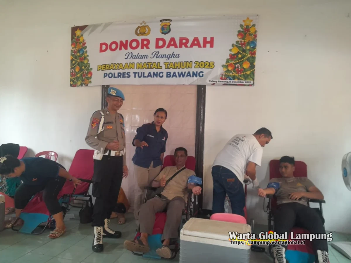 Tulang Bawang — Dalam semangat Natal 2025, Polres Tulang Bawang bersama Palang Merah Indonesia (PMI) menggelar aksi kemanusiaan berupa donor darah massal di Gereja GK SPS Tugu Kuning, Jumat (12/12/2025). Kegiatan dimulai pukul 08.00 WIB dan berlangsung lancar dengan antusiasme tinggi dari masyarakat.