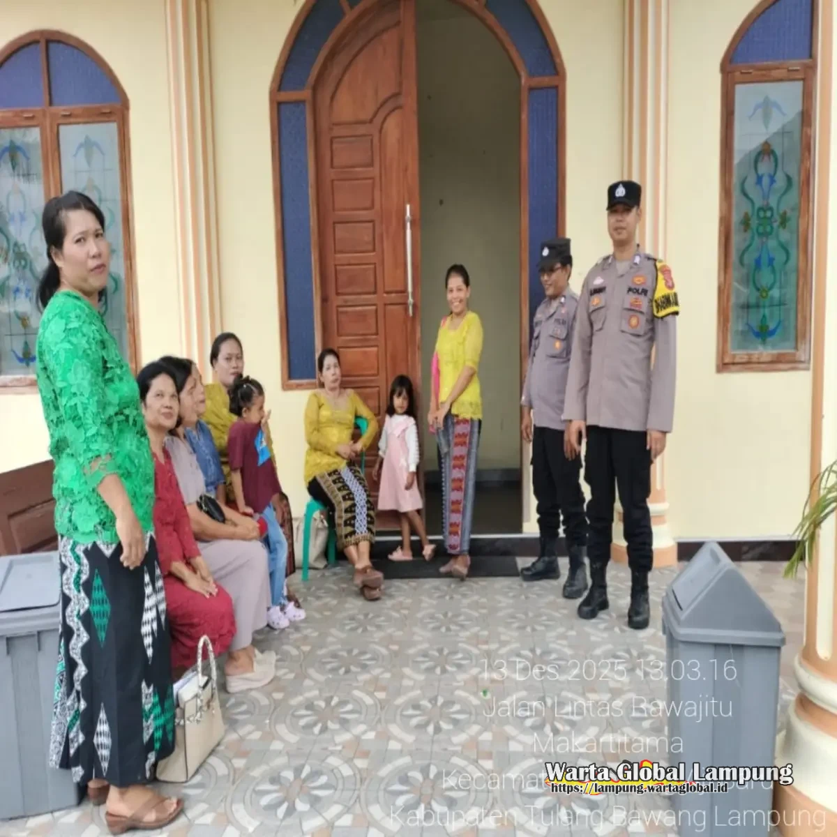 Tulang Bawang – Komitmen Polri dalam menjamin rasa aman dan kebebasan beribadah kembali dibuktikan. Personel Polsek Penawartama Polres Tulang Bawang melaksanakan pengamanan rangkaian Perayaan Hari Natal di Gereja HKBP Makartitama, Kecamatan Gedung Aji Baru, Kabupaten Tulang Bawang, pada Sabtu (13/12/2025) siang.