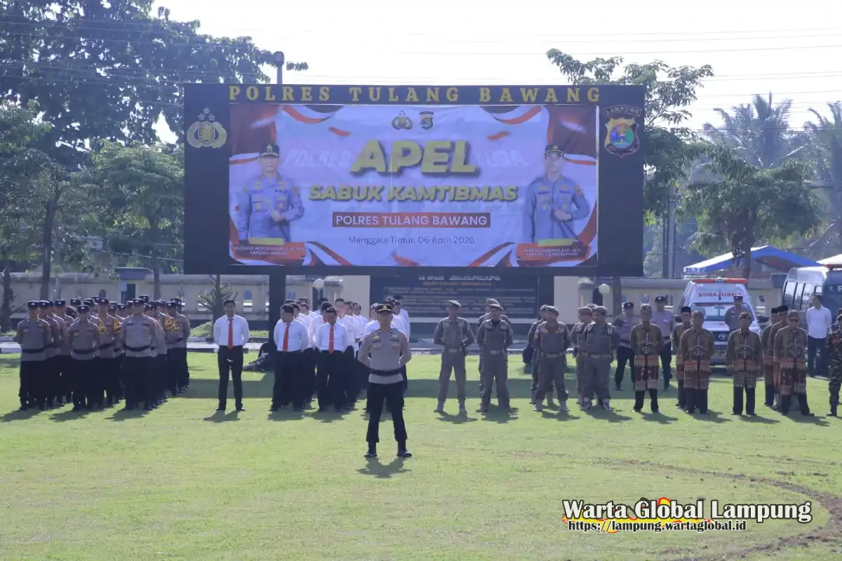 TULANG BAWANG – Suasana khidmat namun penuh semangat menyelimuti Lapangan Polres Tulang Bawang, Senin (06/04/2026) pagi. Ribuan personel gabungan dari unsur kepolisian, pemerintah daerah, hingga ormas dan tokoh masyarakat berbaris rapi dalam momentum besar Apel Sabuk Kamtibmas.