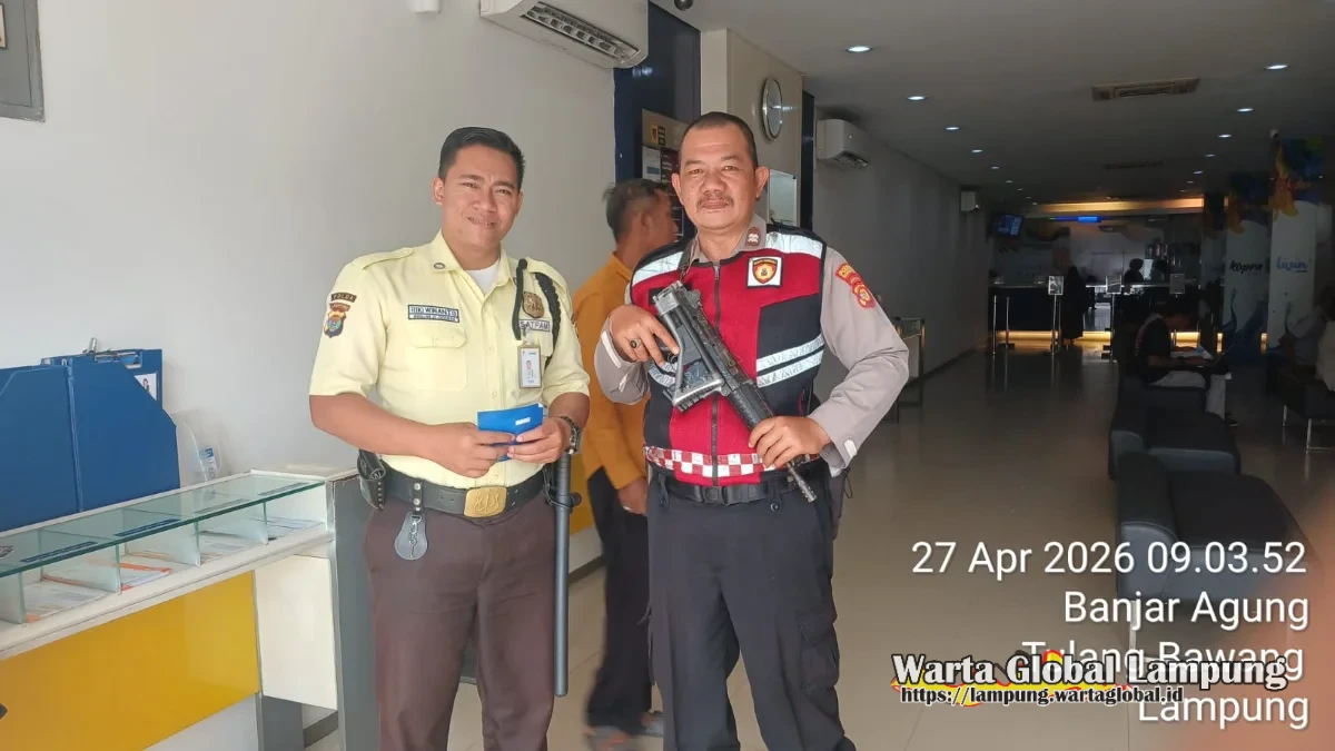 Tulang Bawang – Pemandangan luar biasa tersaji di koridor ekonomi Kabupaten Tulang Bawang pada Senin pagi (27/04/2026). Bak benteng berjalan yang tak tertembus, personel Unit Pamobvit Sat Samapta Polres Tulang Bawang melakukan mobilisasi besar-besaran untuk memastikan seluruh sektor perbankan berada dalam perlindungan mutlak negara.
